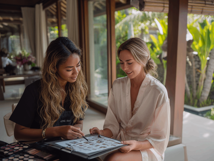 Travel fees are one of the most common surprises in final invoices for Wedding Beauty Packages in Bali. If your venue is located in Uluwatu, North Bali, or a remote villa, artists will charge for their transport and travel time. These fees can range from small fuel surcharges to full accommodation costs if an overnight stay is required.